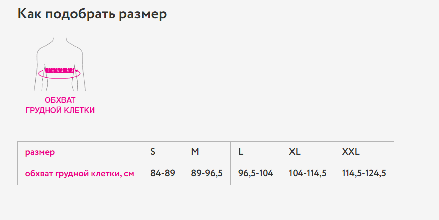 Таблица подбора размера: