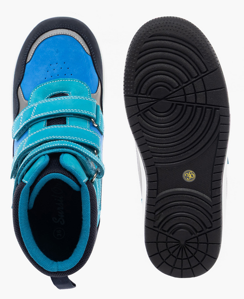 Детские ортопедические стабилизирующие ботинки 23-263-1 Sursil-Ortho из натуральной кожи с текстильной подкладкой контрастных цветов.