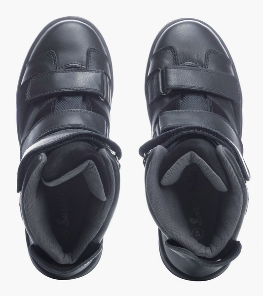 Актуальная модель в стиле Jordan ̶̶̶ идеальный вариант на весну и осень. Модные полуботинки на кедовой подошве обеспечивают максимальный комфорт в повседневной носке. В модели есть формоустойчивый задник, который фиксирует пятку, убирает излишнюю подвижность и предотвращает заваливание стопы внутрь. Вкладная ортопедическая стелька комфортно поддерживает своды стопы. Верх модели выполнен из натуральной кожи. Удобные липучки Велкро позволяют быстро надеть и снять обувь. Для защиты от натираний полуботинки имеют мягкий кант в районе голени. Текстильная подкладка позволяет коже дышать, предотвращая потливость. Подошва выполнена из гибкой прочной резины, которая активно гасит ударную нагрузку на суставы.